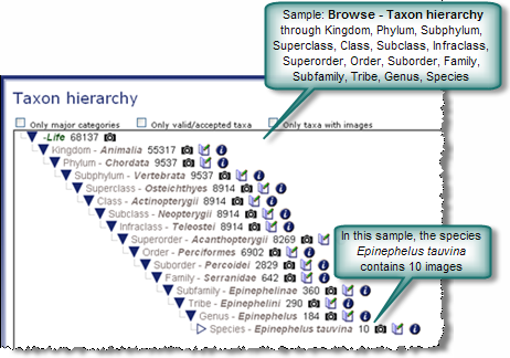 Note: The number of images shown beside the taxon names may not be