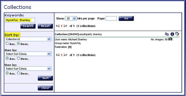 The Sort feature of Morphbank is explained in detail in Browse - Sort Search Results