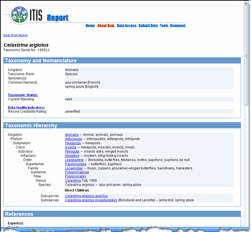 other formats will list that option). Selecting the tree of life symbol Example: Browse - Itis Report