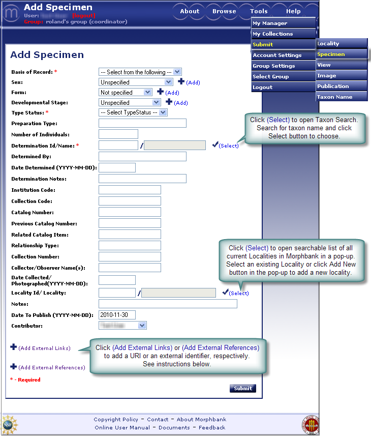 Submit: Add Specimen